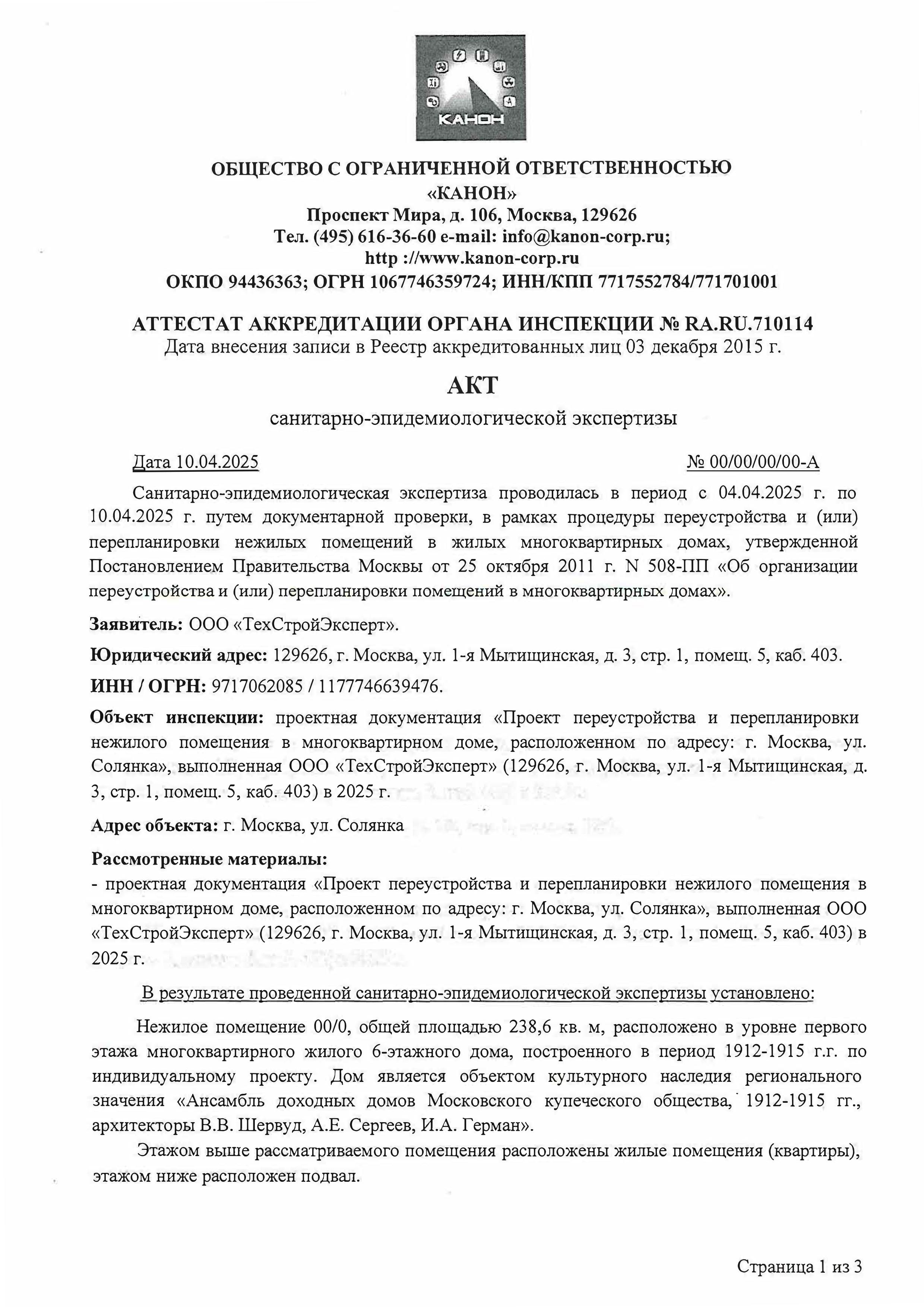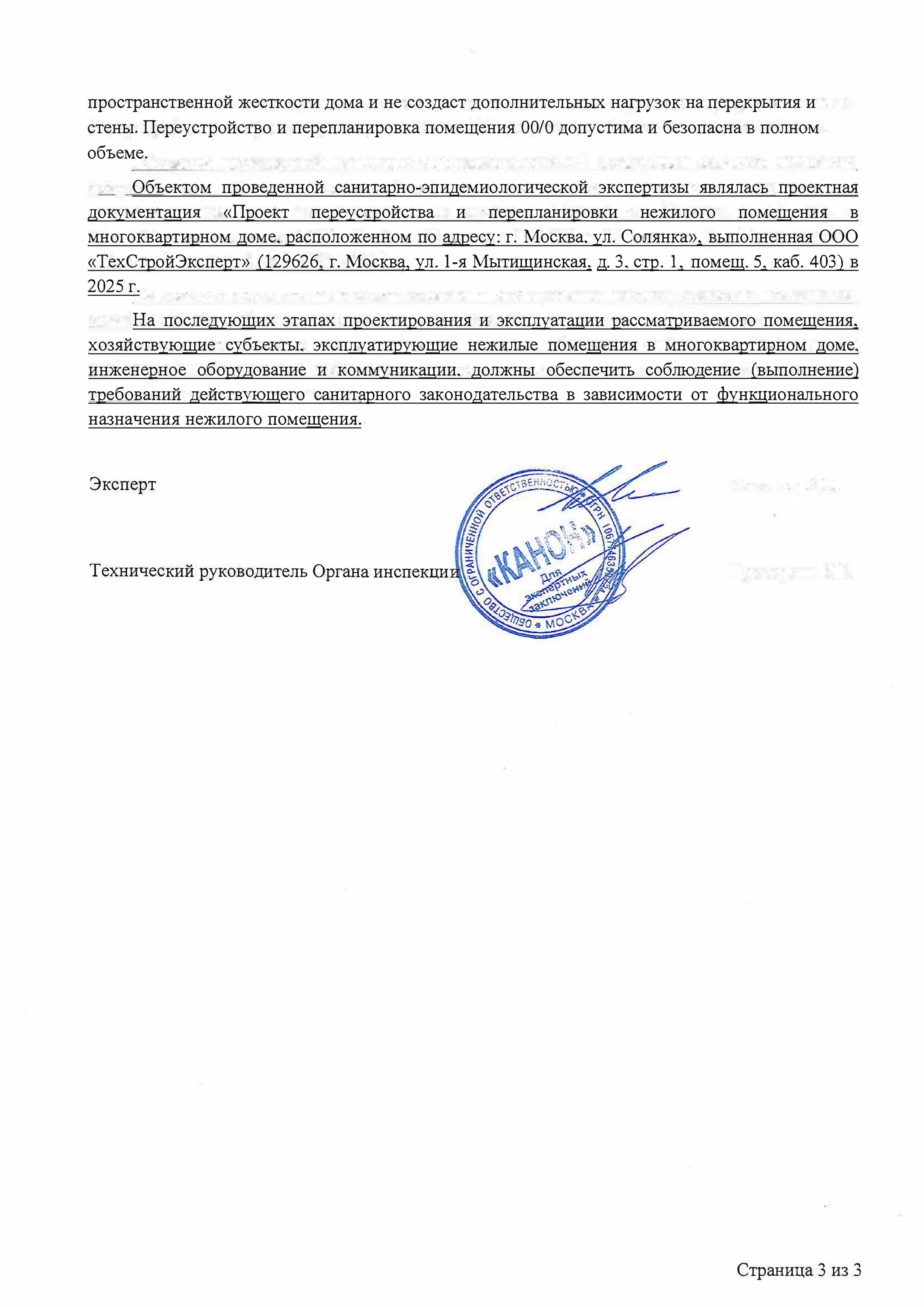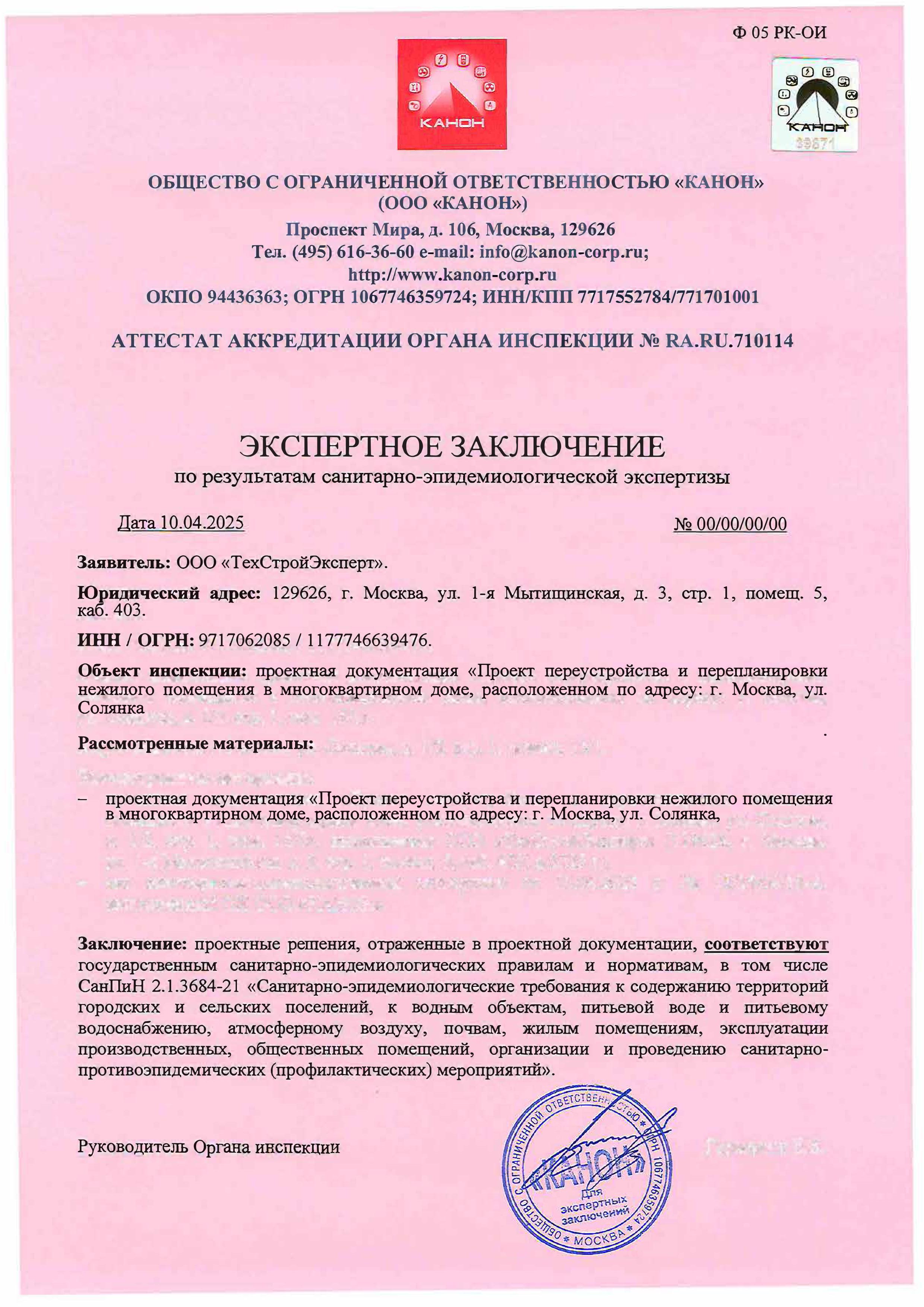 Экспертное заключение по результатам санитарно-эпидемиологической экспертизы
