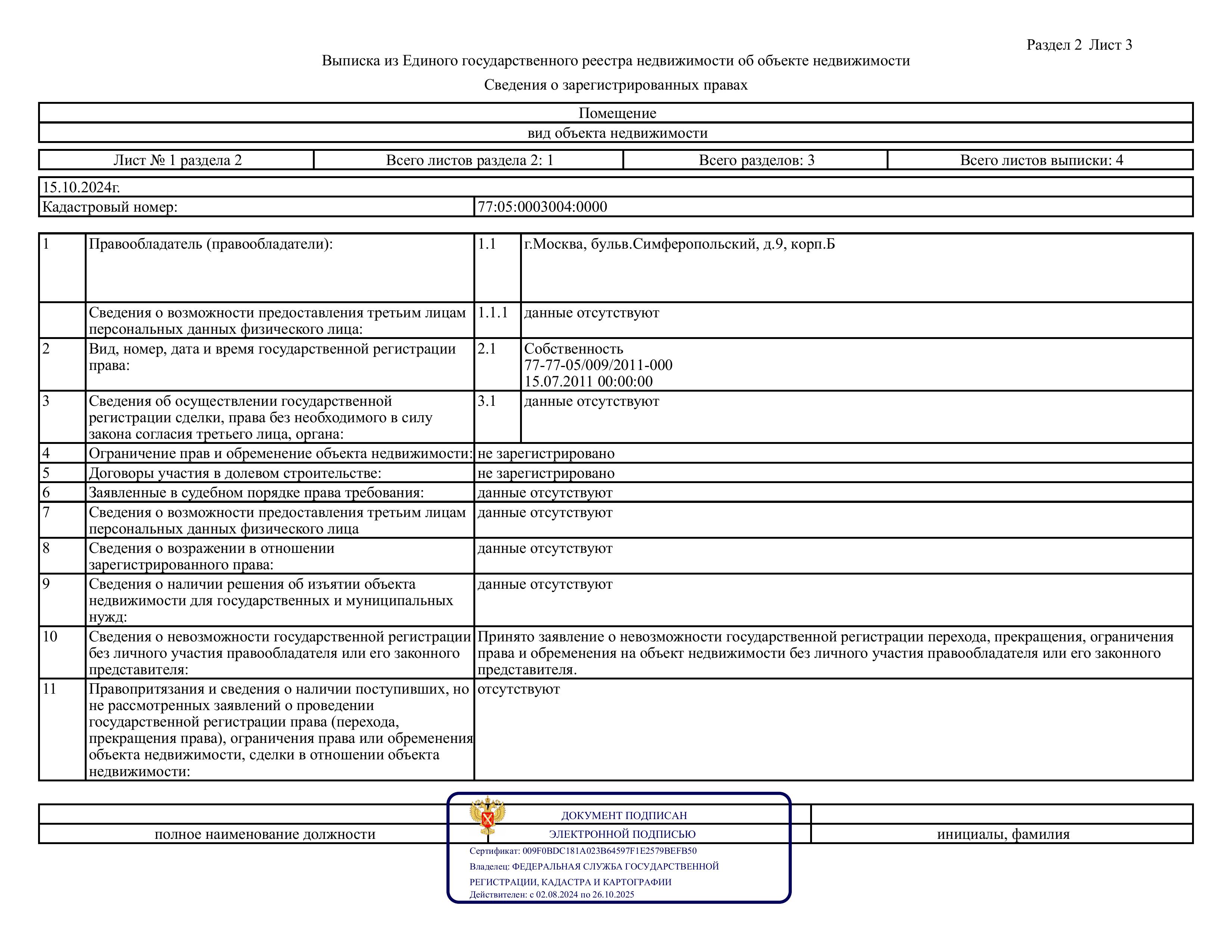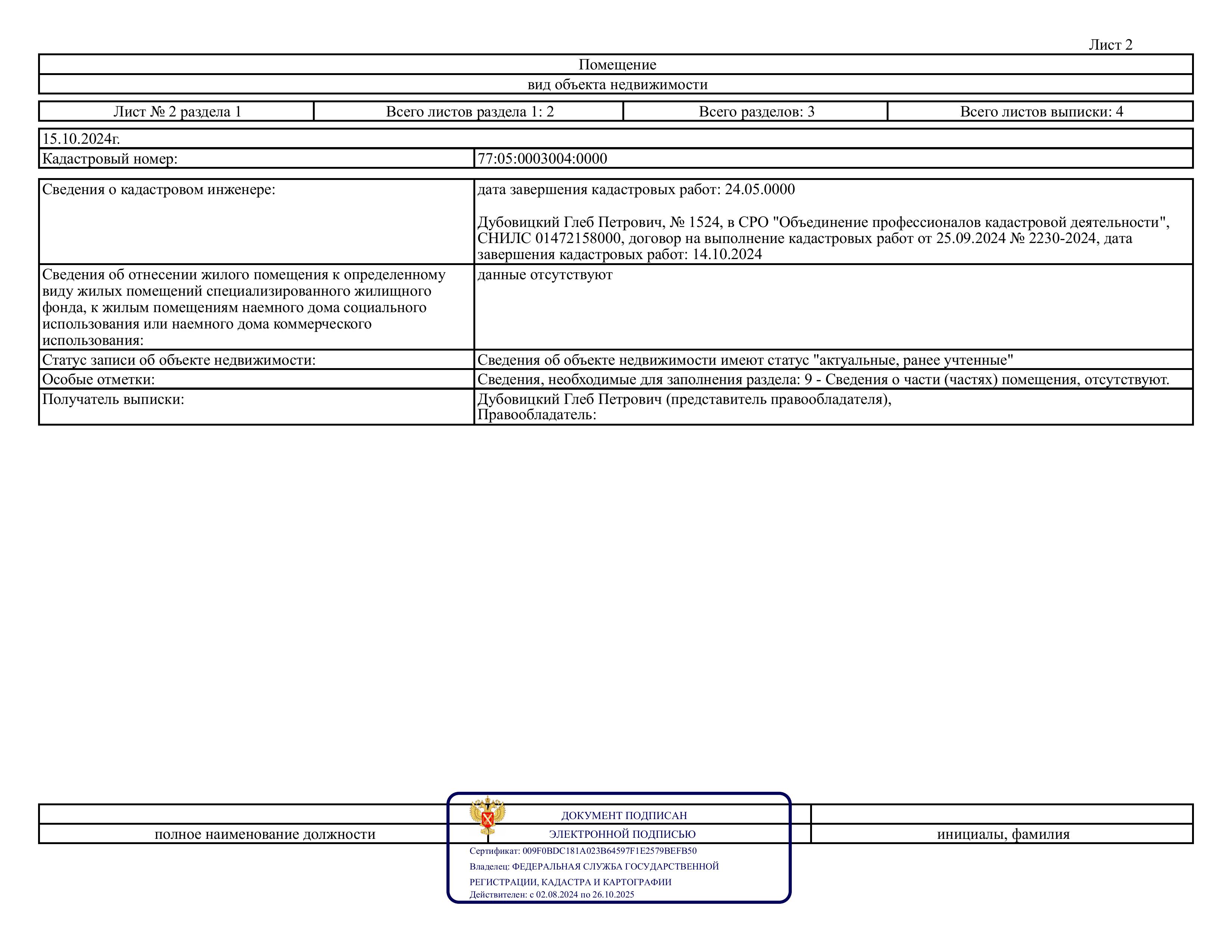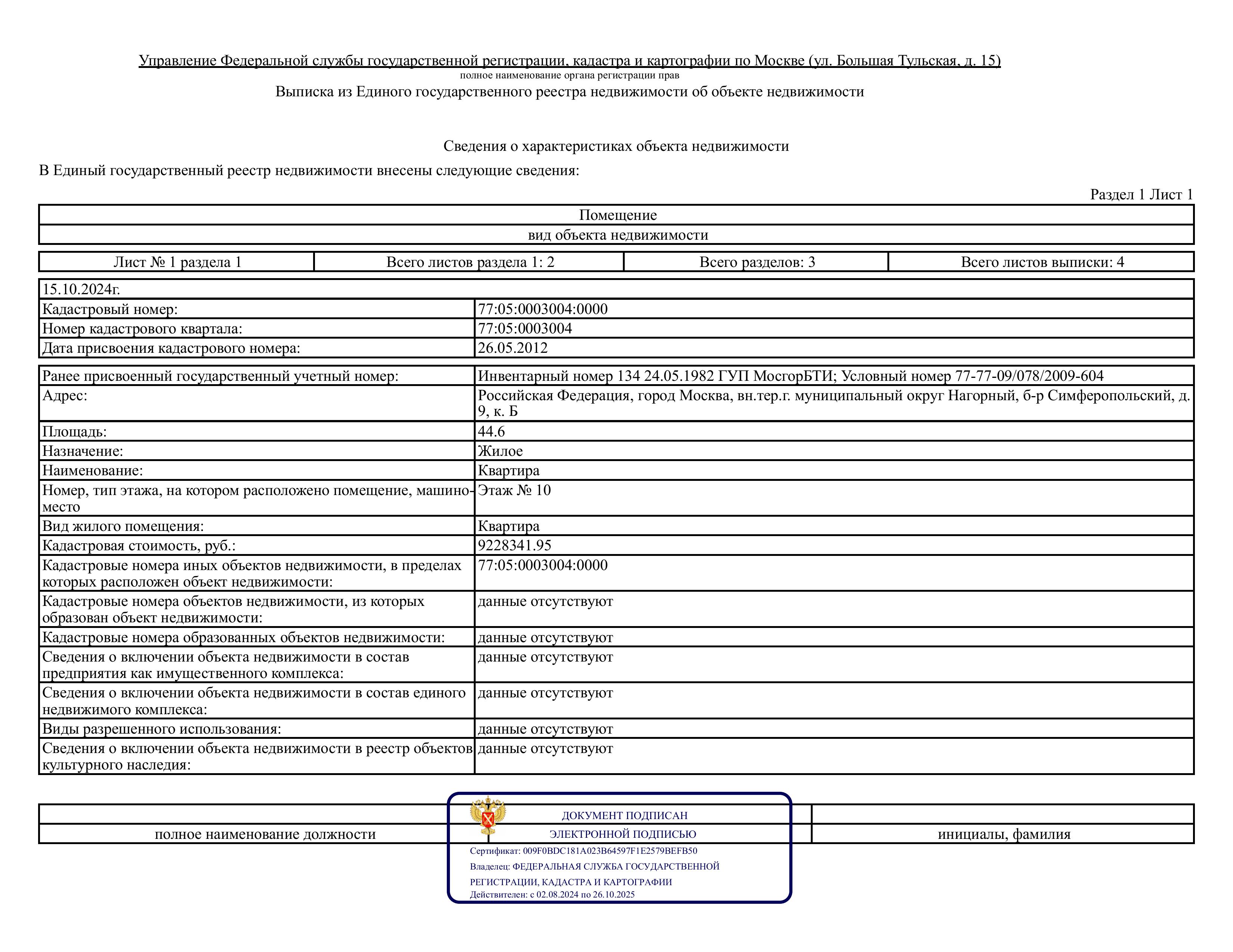 Выписка из Единого государственного реестра недвижимости об объекте недвижимости